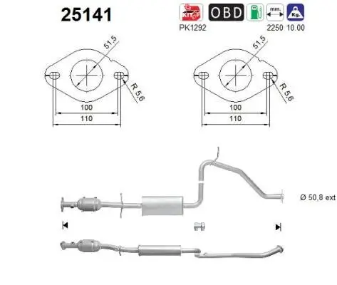 Das Produkt Katalysator des Herstellers AS hat die Abgasnorm Euro 6. Die Länge ist 2250 mm und das Gewicht beträgt 10,0 kg. Es kann beispielsweise an Fahrzeugen des Herstellers MAZDA verwendet werden.