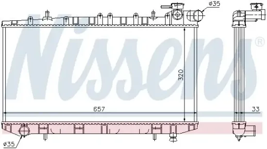 Das Produkt Kühler, Motorkühlung des Herstellers NISSENS hat die Kühlerausführung Kühlrippen gelötet. Es kann beispielsweise an Fahrzeugen des Herstellers NISSAN verwendet werden.