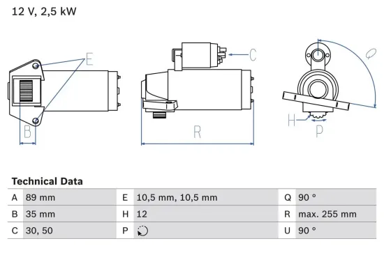 Das Produkt Starter des Herstellers BOSCH hat eine Zähnezahl von 12. Die Drehrichtung ist Drehrichtung im Uhrzeigersinn, die Länge ist 255 mm und die Anzahl der Befestigungsbohrungen lautet 2. Starter hat eine Spannung von 12 V und passt beispielsweise zu Fahrzeugen von FORD.